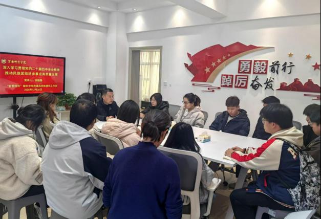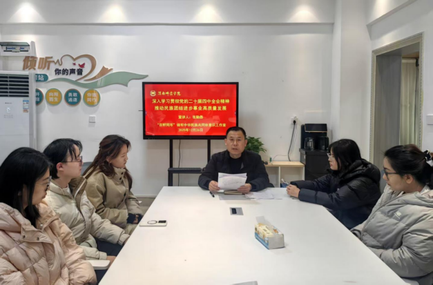 12月26日,best365官方网站best365“百籽同岑”铸牢中华民族共同体意识工作室邀请公司党委委员、统战部部长张勤恳在“一站式”员工社区为各民族师生代表宣讲党的二十届四中全会精神。