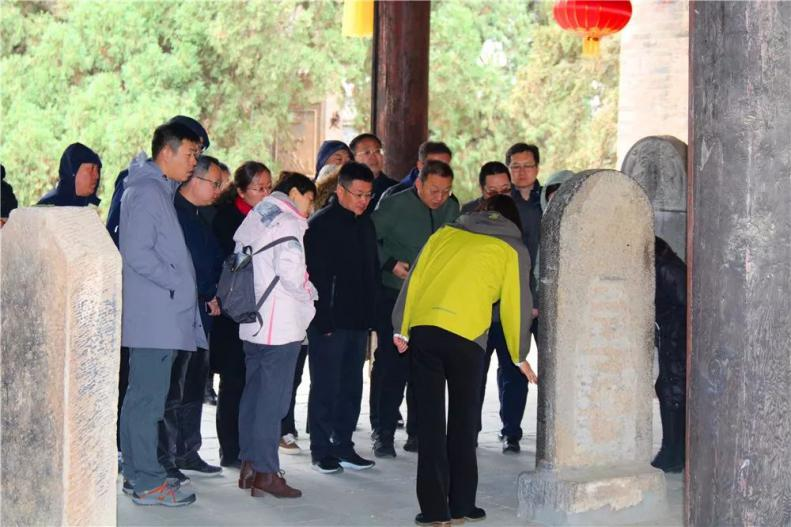在仓颉庙考察过程中,王鹏远老师带领同学们了解了仓颉造字的发展与演变。仓颉庙景区负责人介绍到,景区在强化仓颉庙保护的基础上,为了打造仓颉文化品牌,每年谷雨时节,按照省级非物质文化遗产保护名录“谷雨祭祀仓颉典礼”九规制举行祭祀仓颉典礼,2016年起,还以谷雨祭祀仓颉活动为载体,举行“一带一路”年度汉字发布仪式,不断扩大仓颉文化品牌的影响力,景区还开发了与景区资源相融合的“汉字寻根、文明探源”研学旅行品牌课程,包括穿汉服、习汉礼、祭先圣、游圣庙、写汉字、诵诗书、体验古法雕版印刷等丰富多彩的内容,吸引了万名学子前来体验,扩大了品牌影响力。