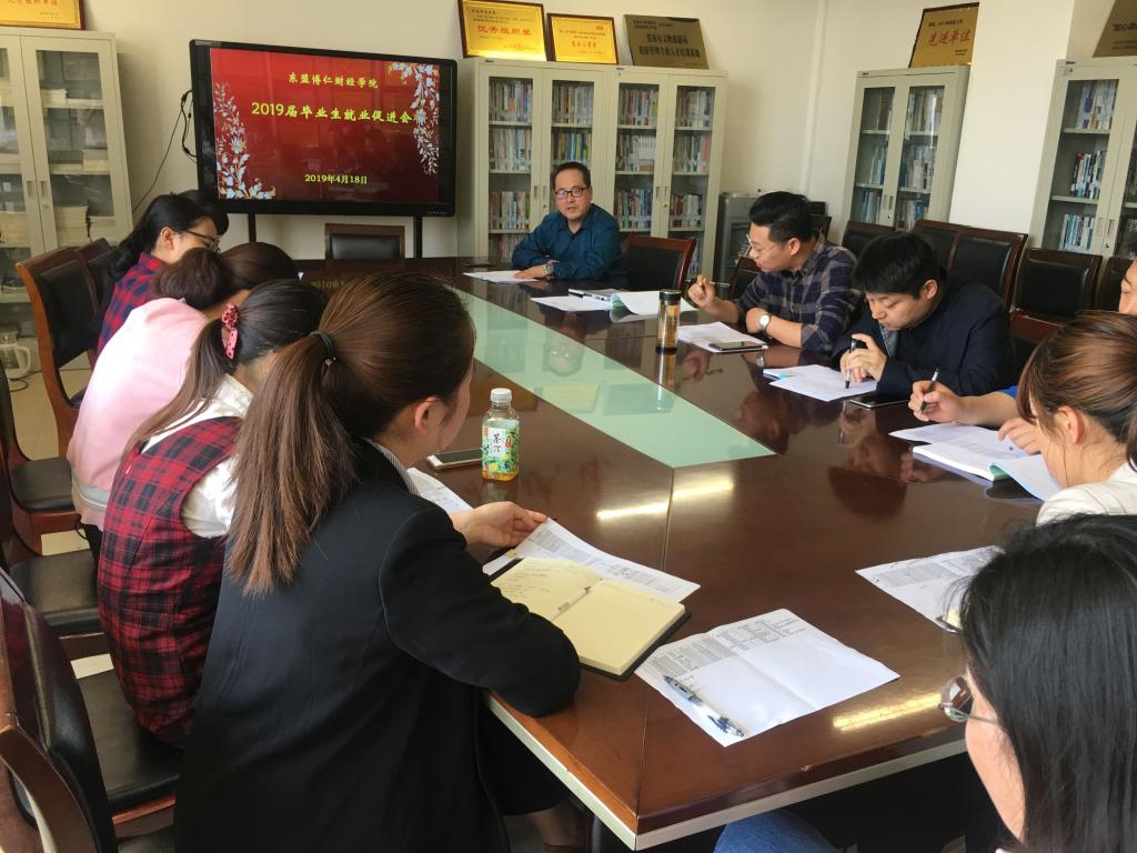 4月18日下午,东盟博仁财经公司在1518会议室召开2019届毕业生就业促进会,公司党政领导、辅导员及办公室工作人员参加了会议,会议由党总支书记魏光民主持。